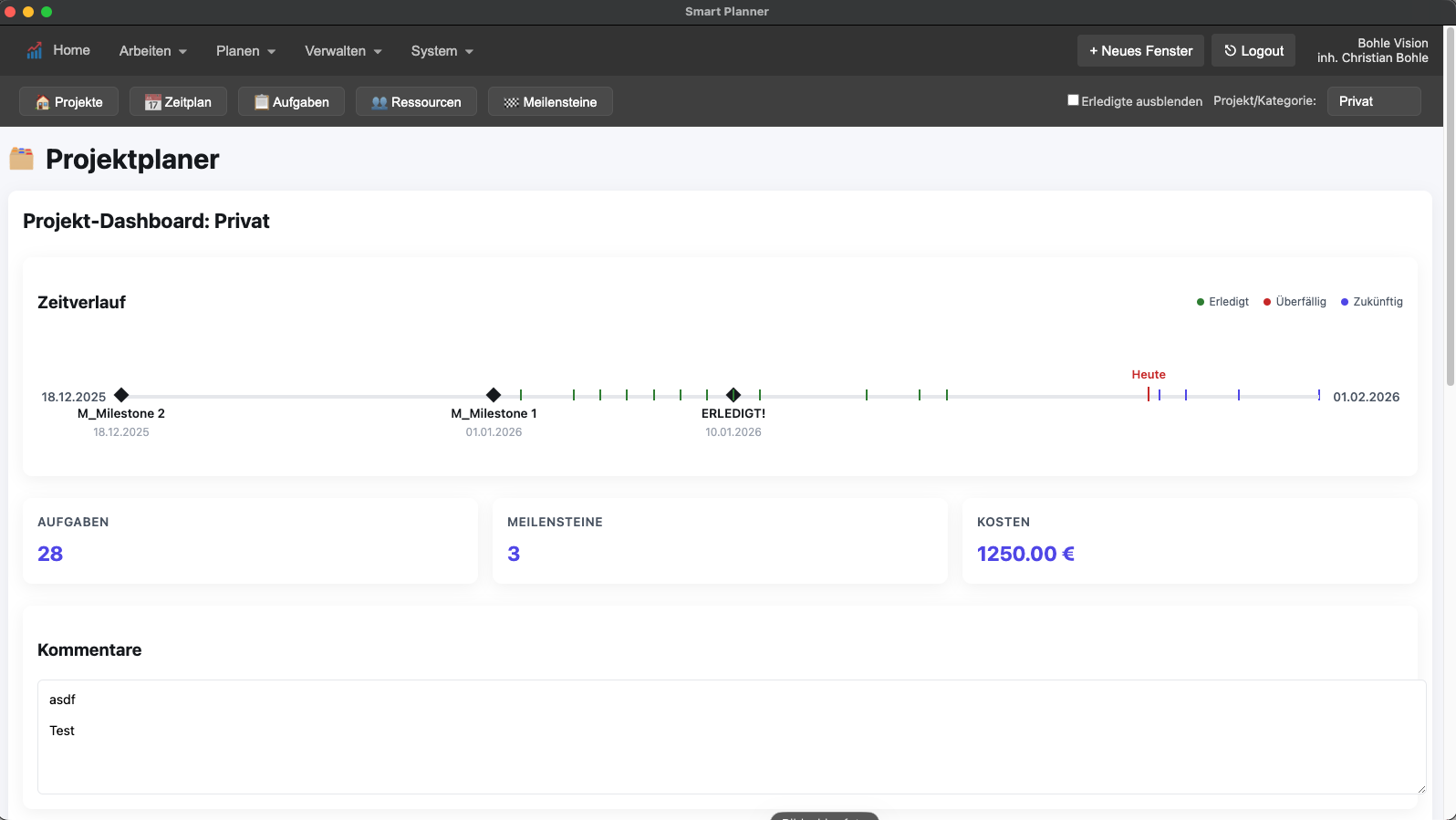 Dashboard, task board, calendar, gantt, resource management, cost management, lessons learned and more - for personal and business use.